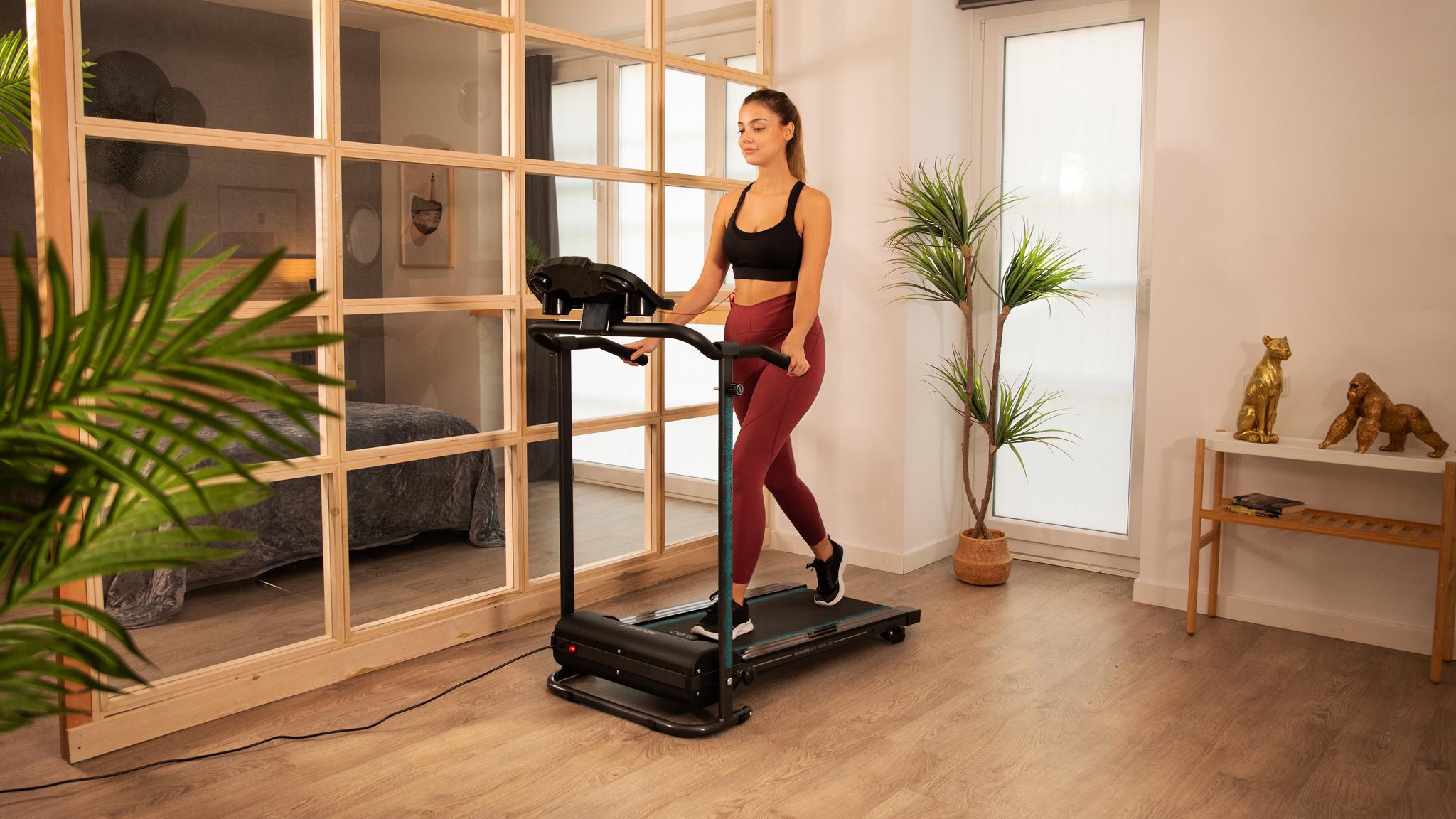 - Składana konstrukcja: Składana konstrukcja: Bieżnię można złożyć po treningu, co umożliwia zaoszczędzenie miejsca.