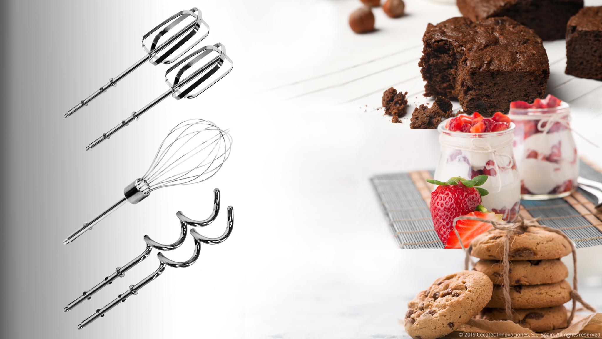 Trzy różne końcówki to klucz do kulinarnej różnorodności. Z ich pomocą z łatwością wyczarujesz lekkie kremy, puszyste wypieki i doskonale wyrobione ciasta – a wszystko to dzięki wytrzymałym akcesoriom ze stali nierdzewnej.