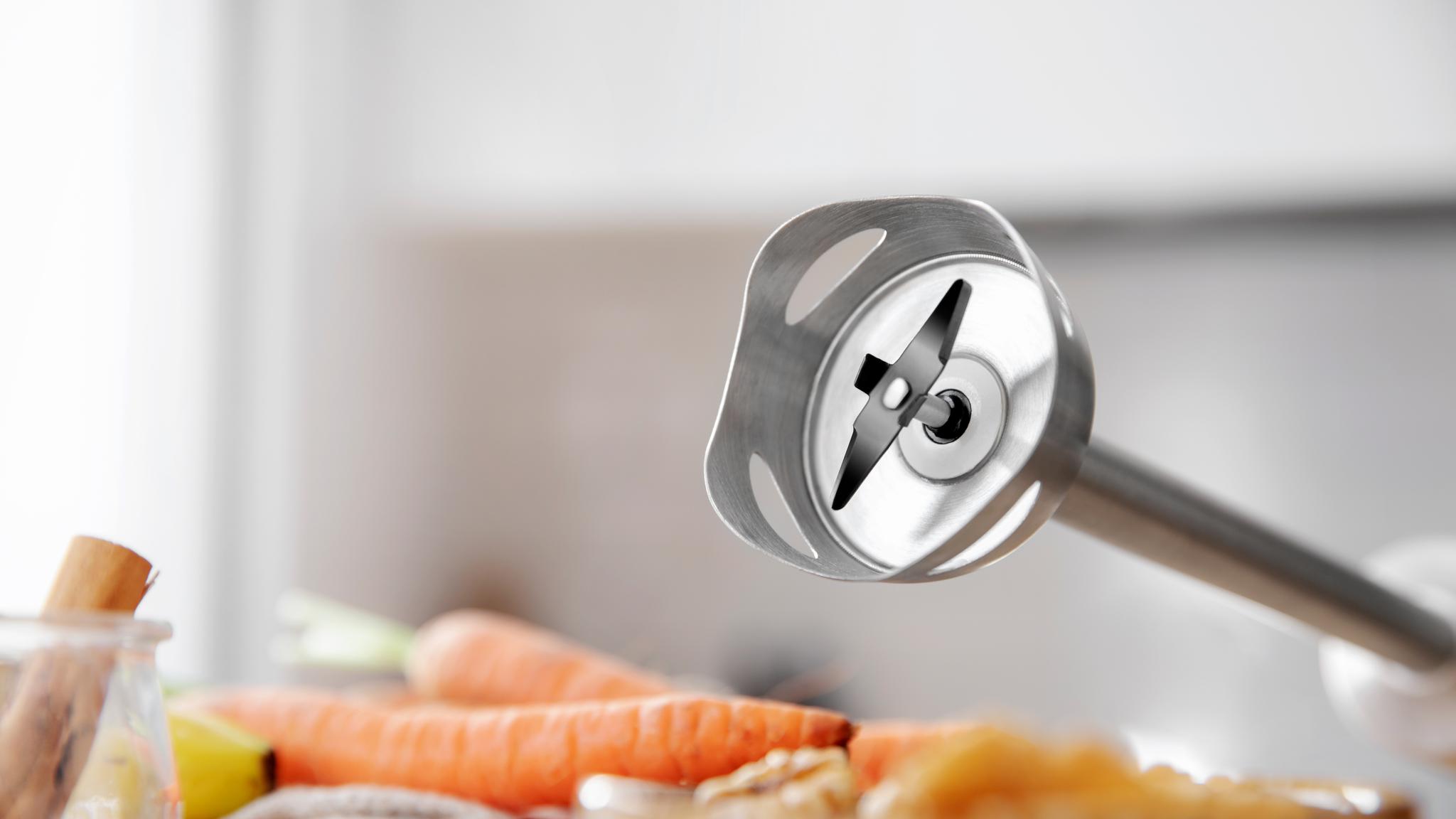 Innowacyjne 4-ramienne ostrze z powłoką z czarnego tytanu cechuje się wyjątkową twardością i długotrwałym ostrzem. Nawet najtwardsze składniki nie stanowią dla niego wyzwania. Efekt? Jeszcze szybsze i precyzyjniejsze blendowanie.