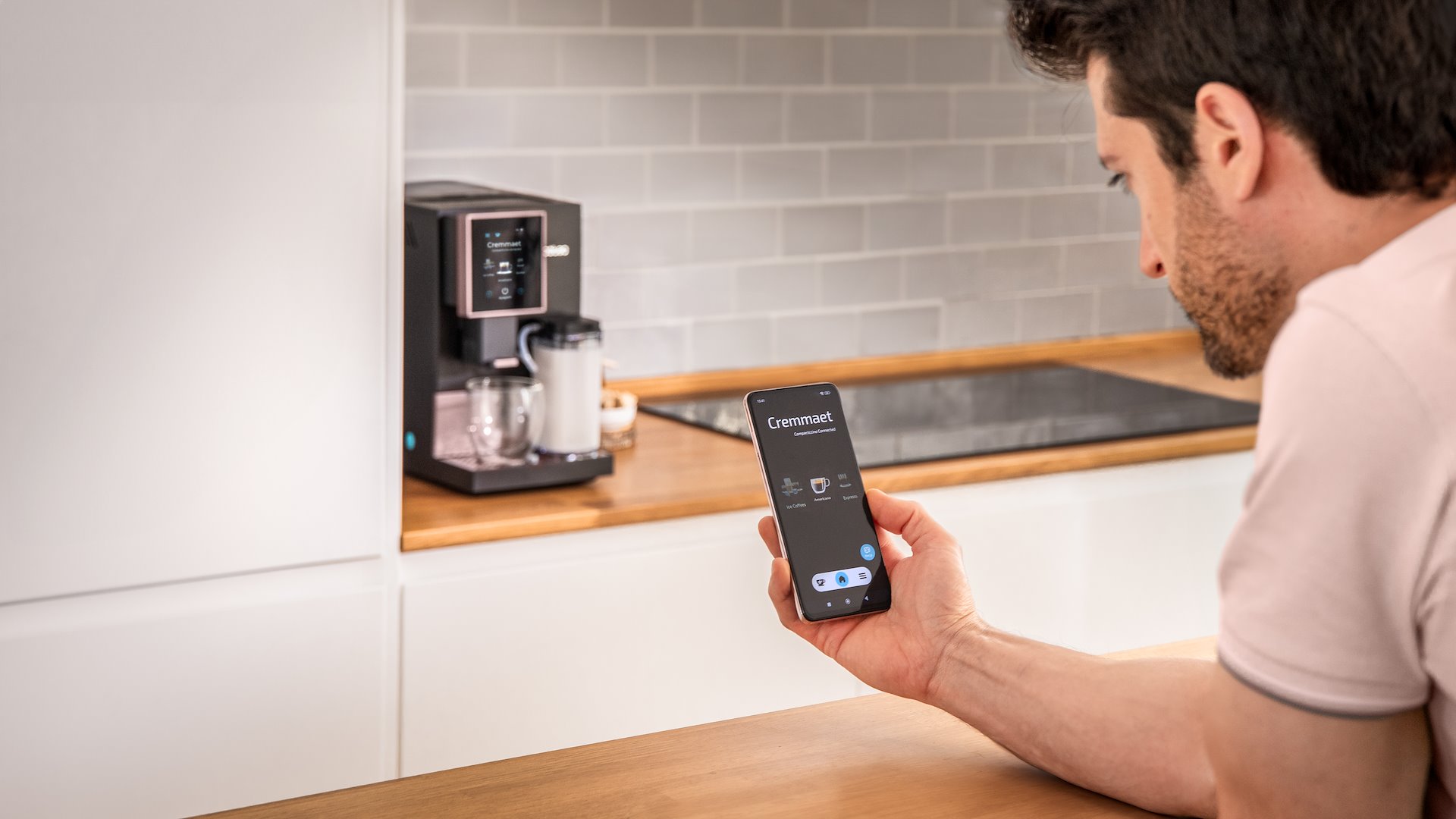 Creammaet Compactccino Connected można połączyć z aplikacją na telefonie, co pozwala na zaparzenie gorącej porannej kawy, która będzie gotowa jeszcze zanim wstaniesz z łóżka.