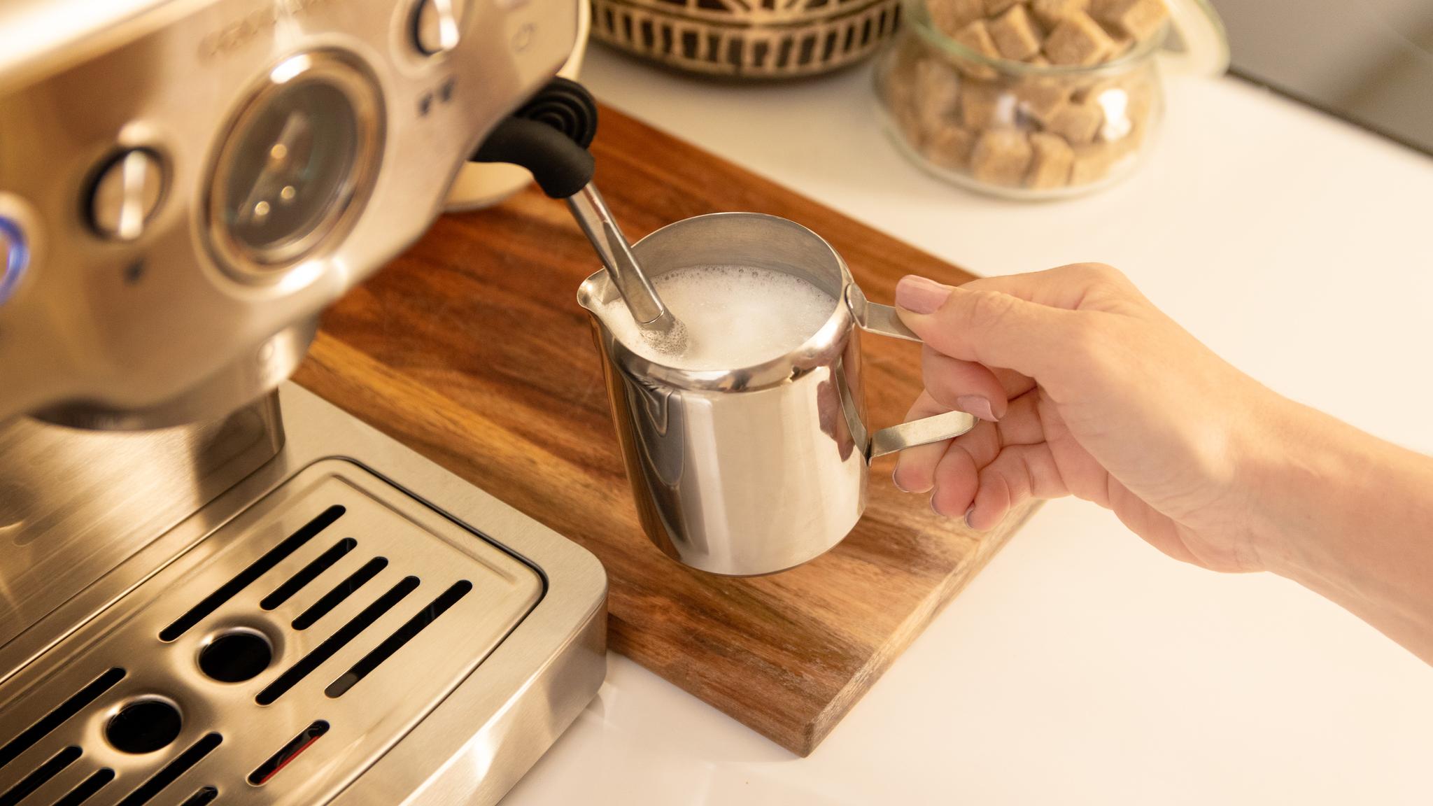 Espresso 20 Barista Mini został wyposażony w ruchomy spieniacz, który umożliwia wygodne przygotowanie cappuccino i latte z idealnie gęstą pianką, a także szybkie podgrzanie wody i zaparzenie herbaty – bez potrzeby używania czajnika.