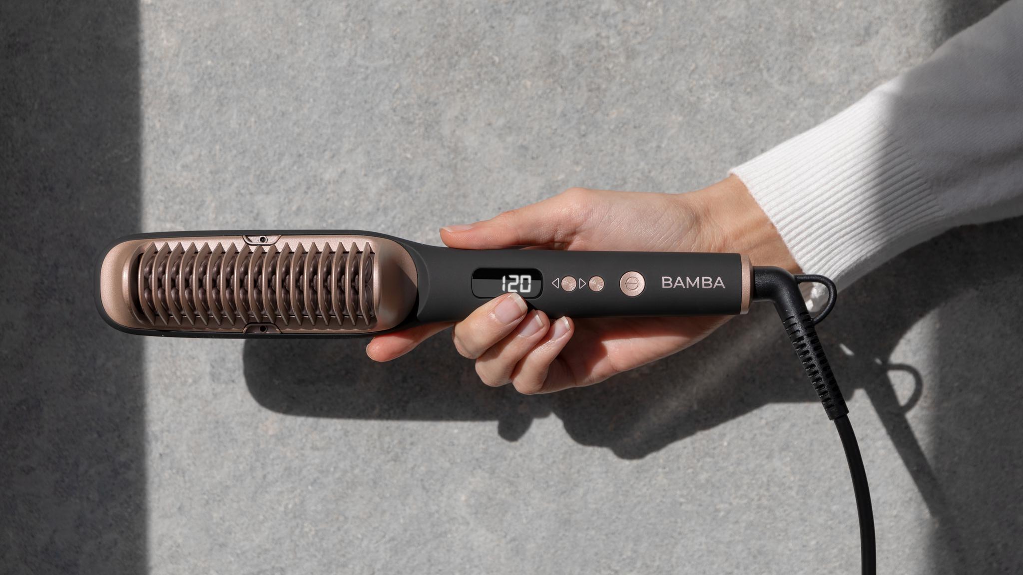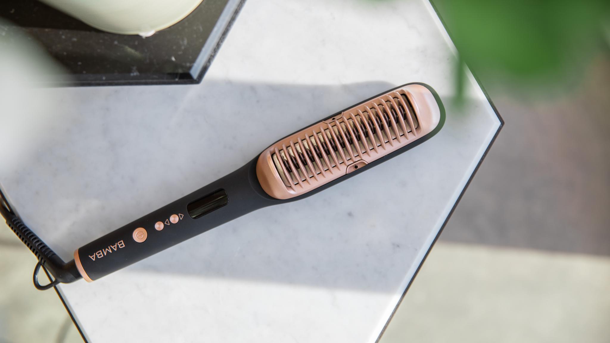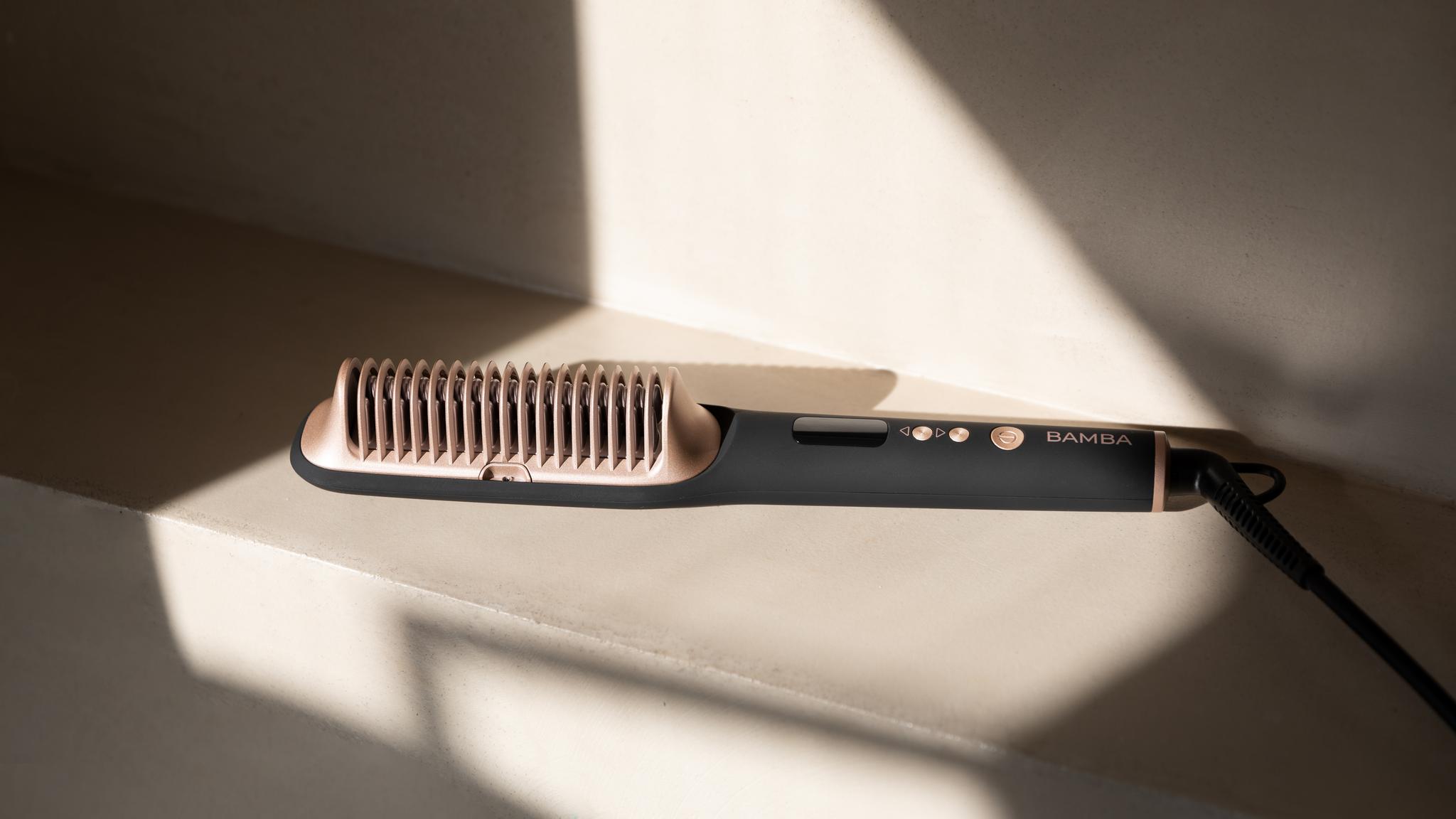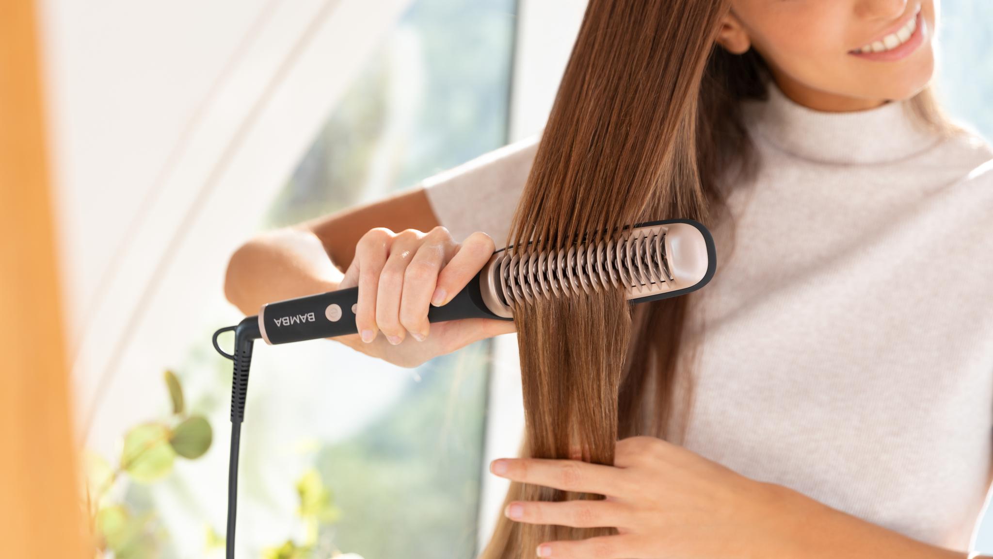 Dzięki keratynie, olejkowi arganowemu i jonom włosy gładko przesuwają się po powierzchni, co zapobiega ich łamliwości i zapewnia ultrabłyszczące wykończenie bez puszenia. - Regulacja temperatury:Dopasuj temperaturę szczotki do potrzeb swoich włosów w zakresie od 120°C do 220°C.
