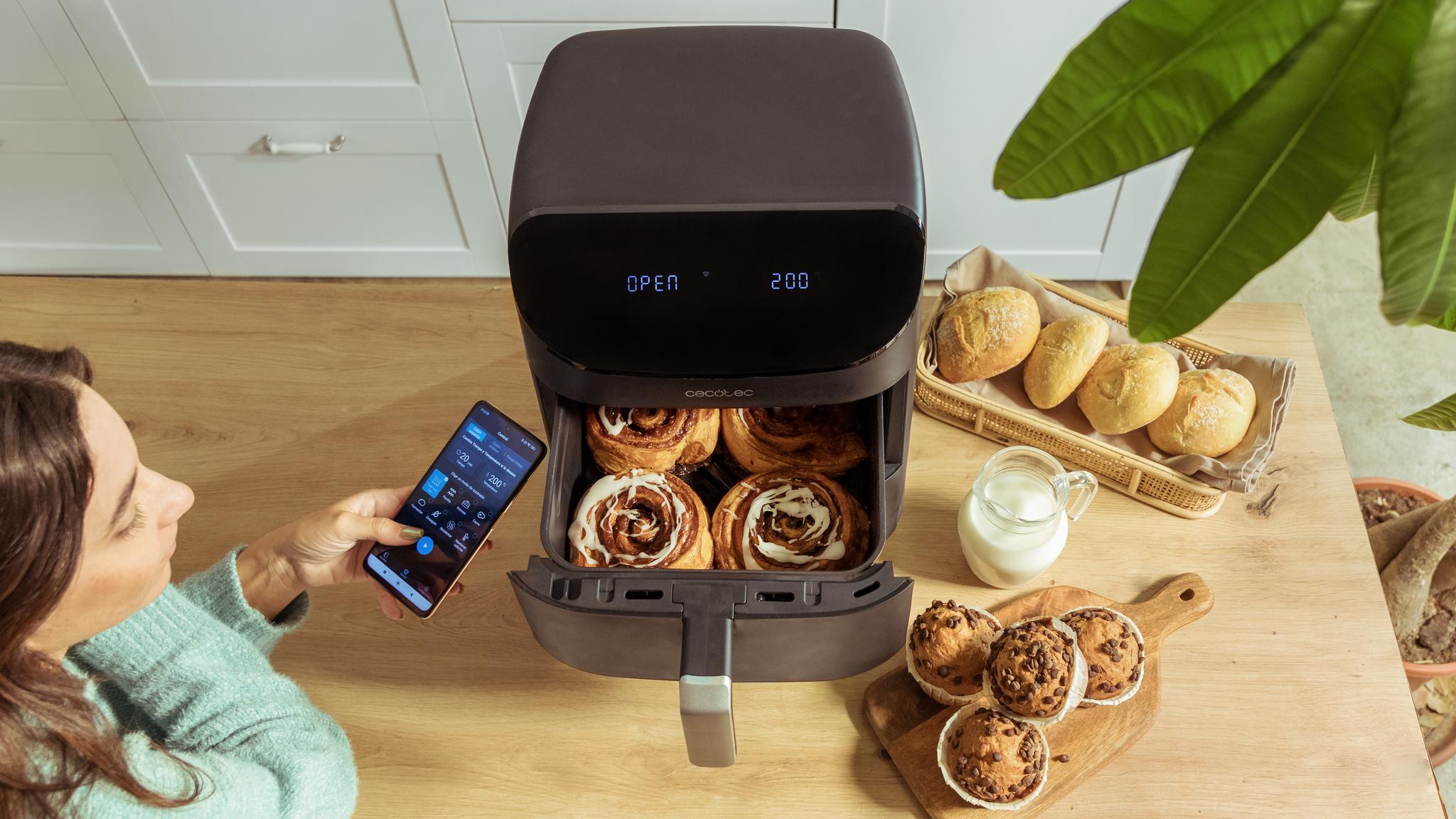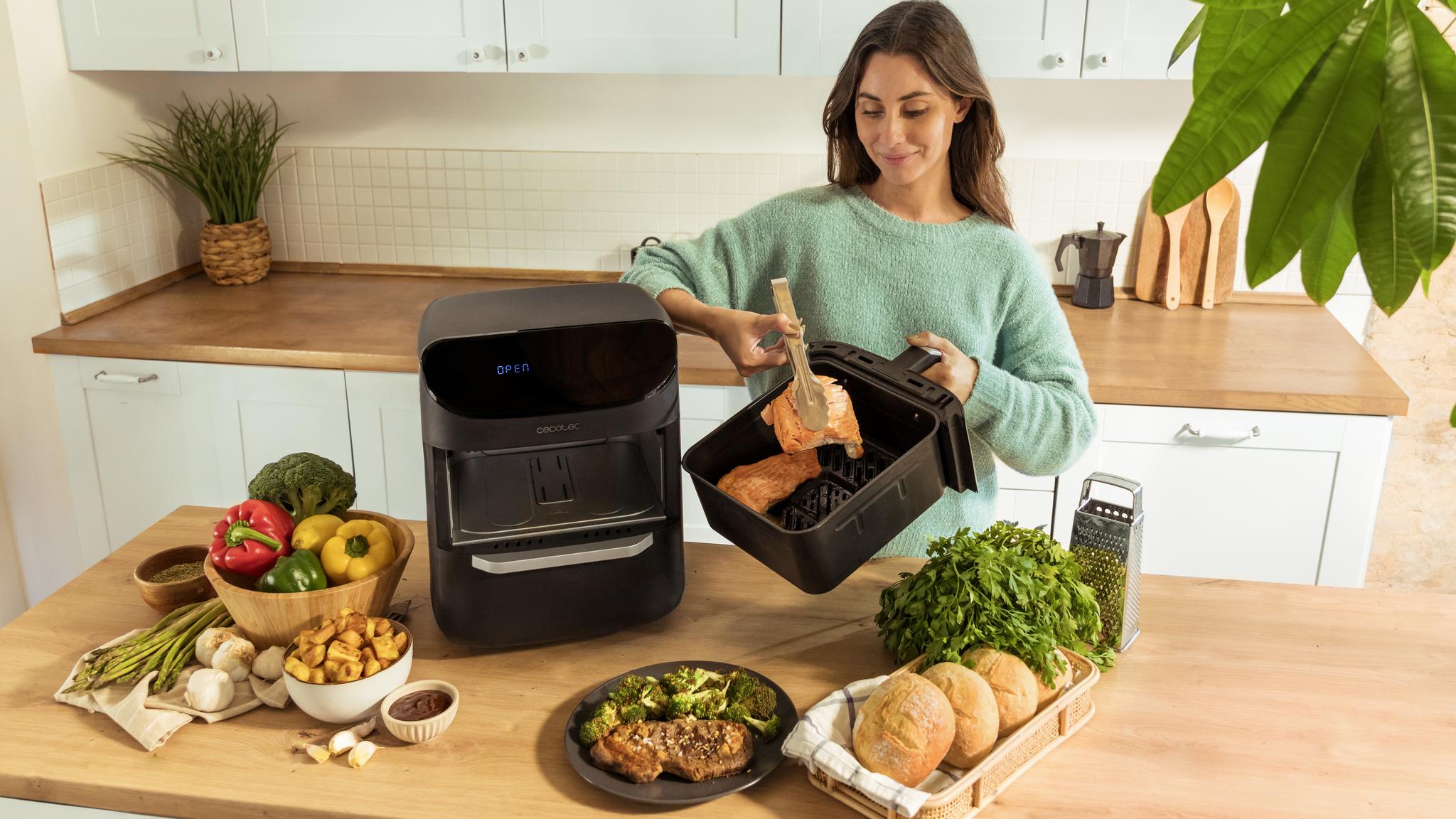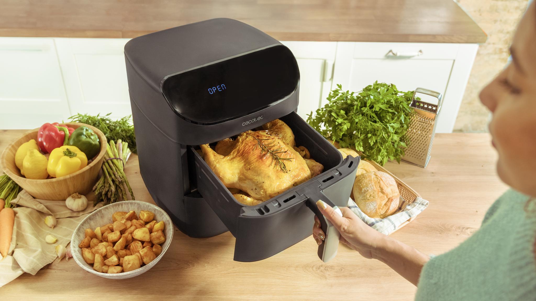 Cecofry Foodcourt 11000 Connected to nowoczesne rozwiązanie, które gwarantuje pełną wszechstronność i pozwala na jednoczesne przygotowanie dwóch potraw. Dzięki pojemności 11 litrów łączy funkcjonalność piekarnika i frytkownicy beztłuszczowej, oferując wygodę i różnorodność w jednym urządzeniu.