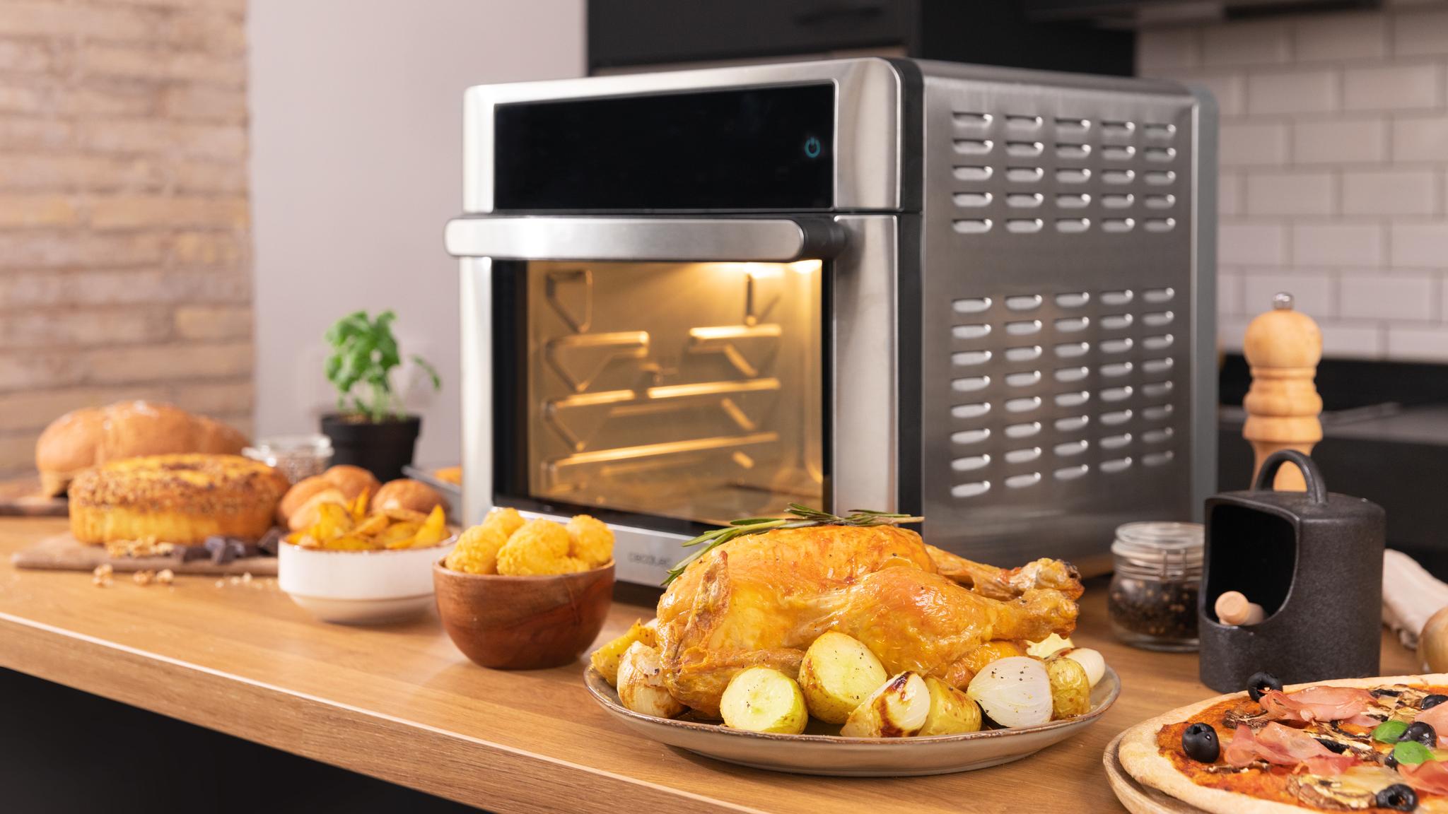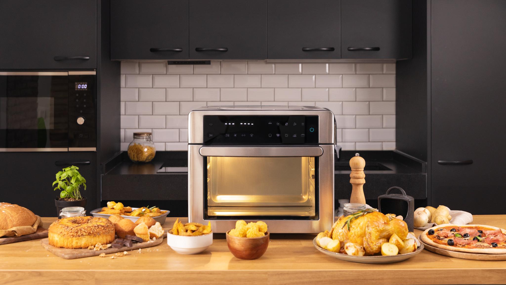 Piekarnik stołowy Bake&Fry 3000 Touch Steel świetnie sprawdzi się także w ograniczonej przestrzeni. Jego przemyślana pojemność pozwala wygodnie przyrządzać codzienne posiłki, a także większe dania dla całej rodziny – bez problemu pomieści nawet całego kurczaka.