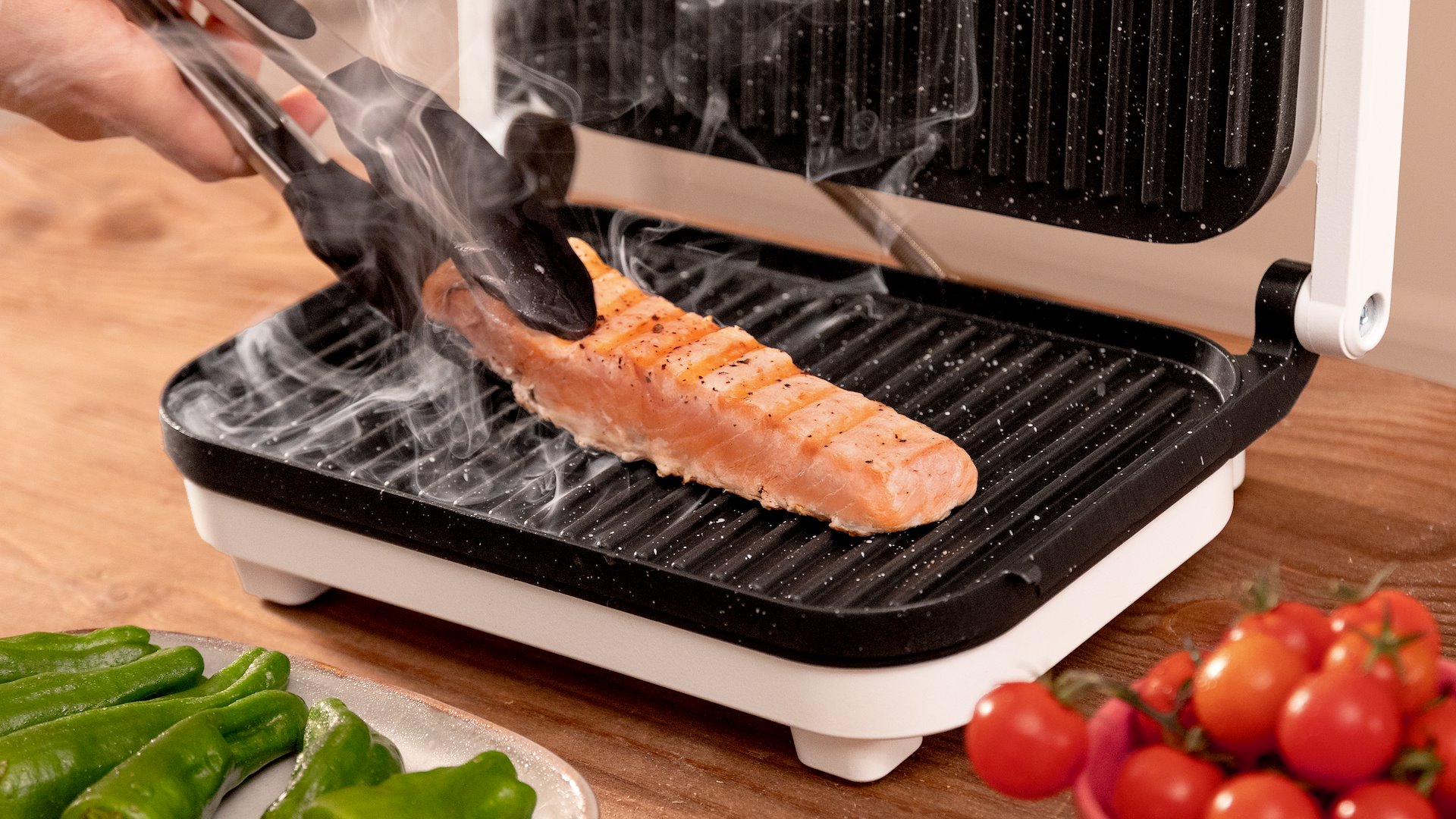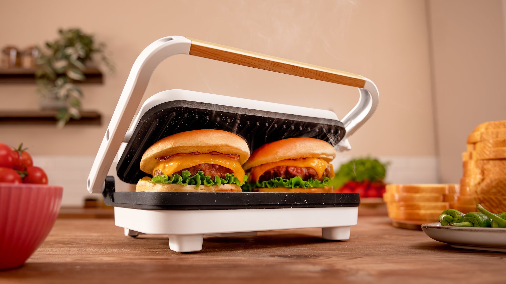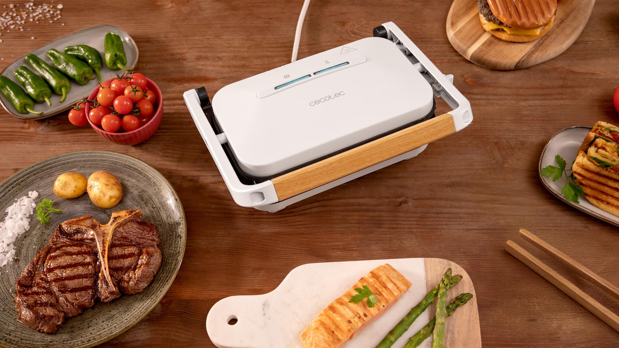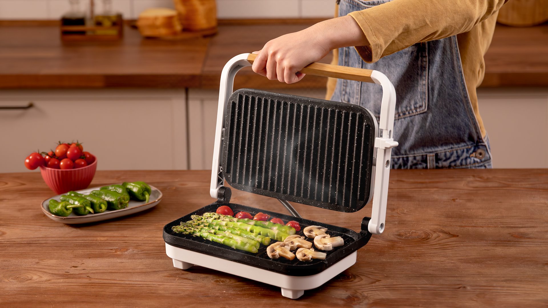 Regulowana wysokość górnej płyty pozwala idealnie dopasować grill do każdej potrawy — od delikatnych tostów po soczyste, grube kawałki mięsa — dając Ci pełną kontrolę i kulinarną swobodę.