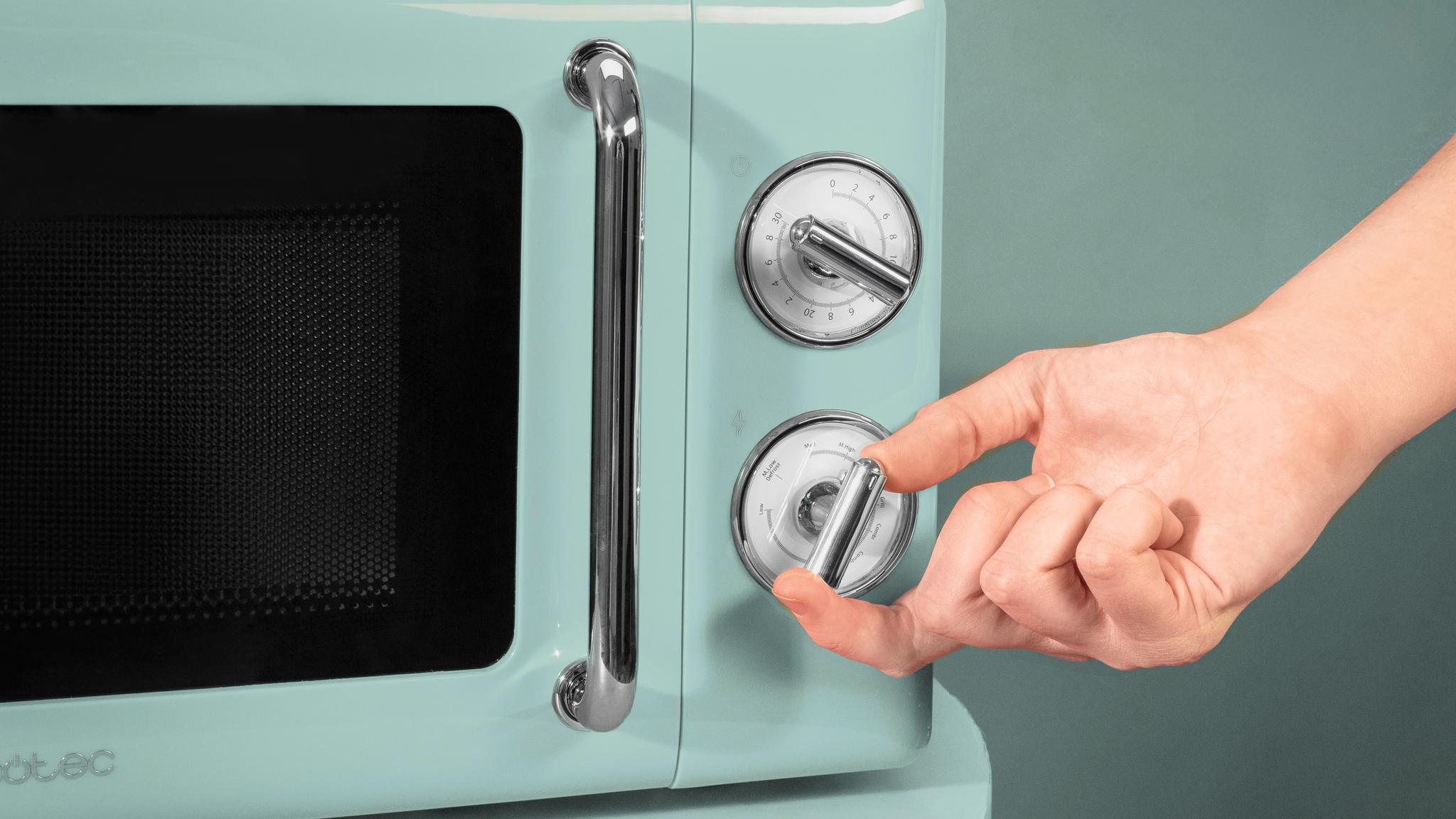 Mechaniczna kuchenka mikrofalowa z funkcją grilla posiada pojemność 20 litrów, dzięki czemu możesz podgrzewać lub rozmrażać dowolne produkty spożywcze. - 6 poziomów mocy: Wybierz i reguluj moc dzięki 6 poziomom, aby uzyskać oczekiwany efekt.