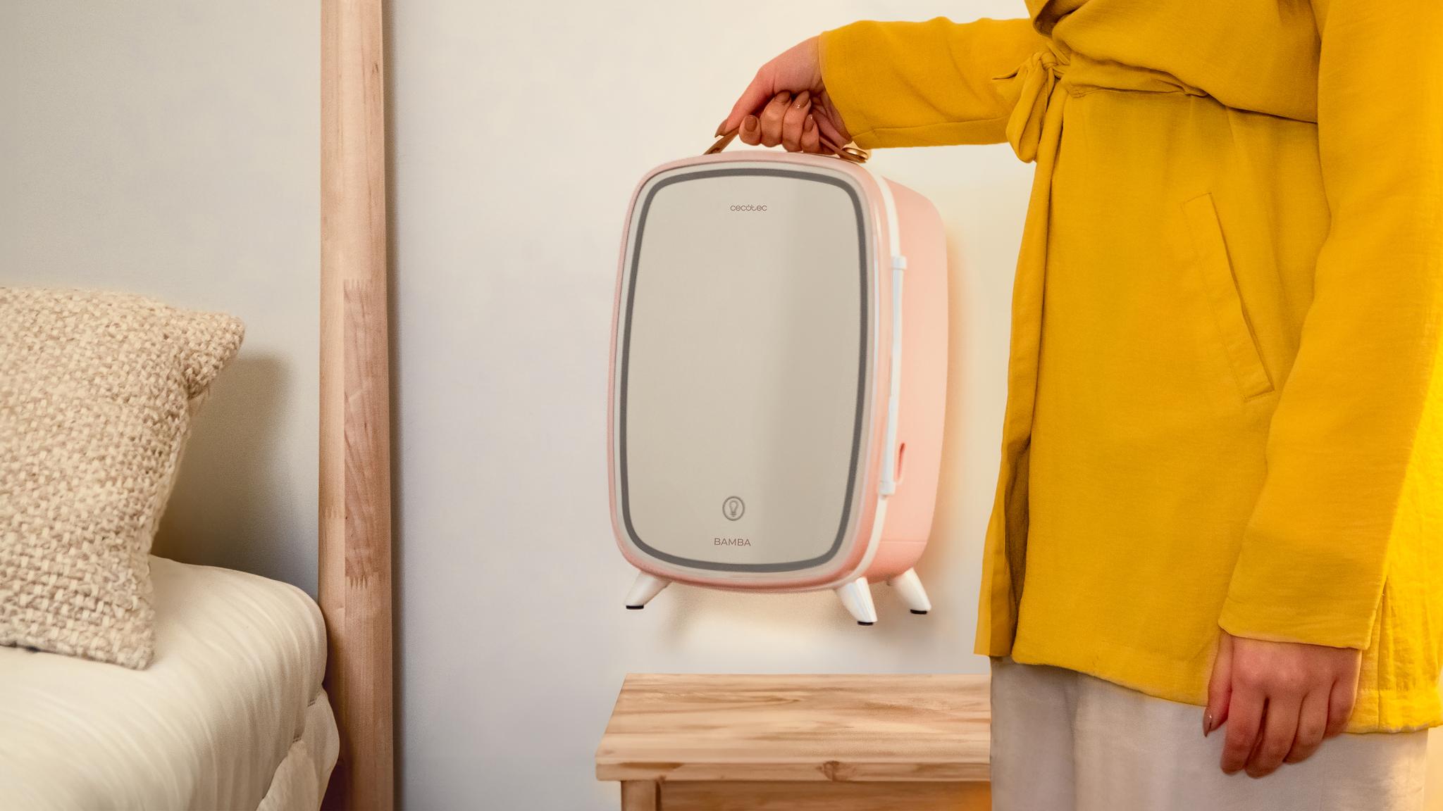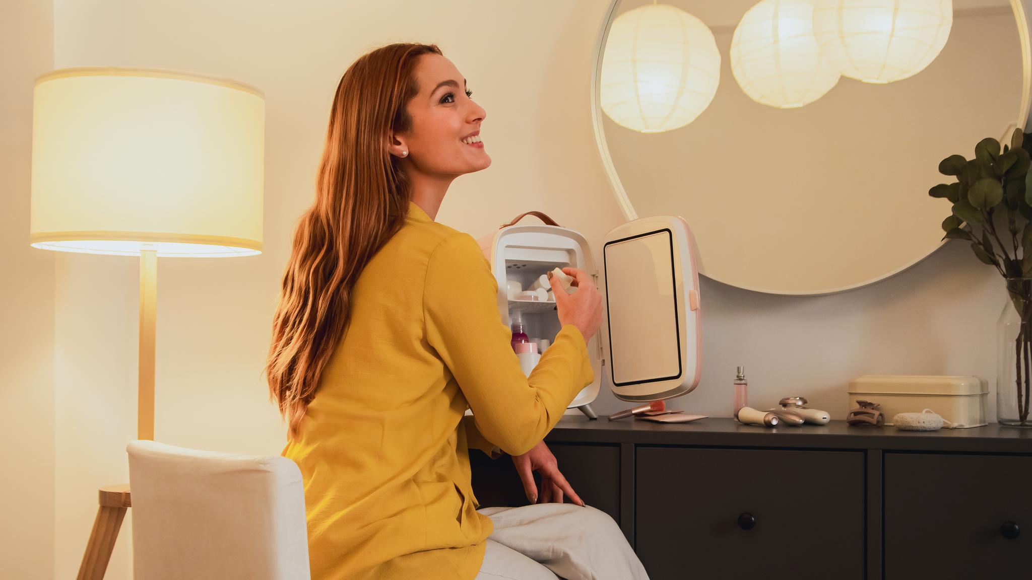 Lodówka COOLINGBEAUTY 6000 MIRROR z wbudowanym lusterkiem ułatwia pielęgnację i aplikację kosmetyków. Kompaktowa, funkcjonalna i estetyczna – sprawdzi się w domu i w podróży.