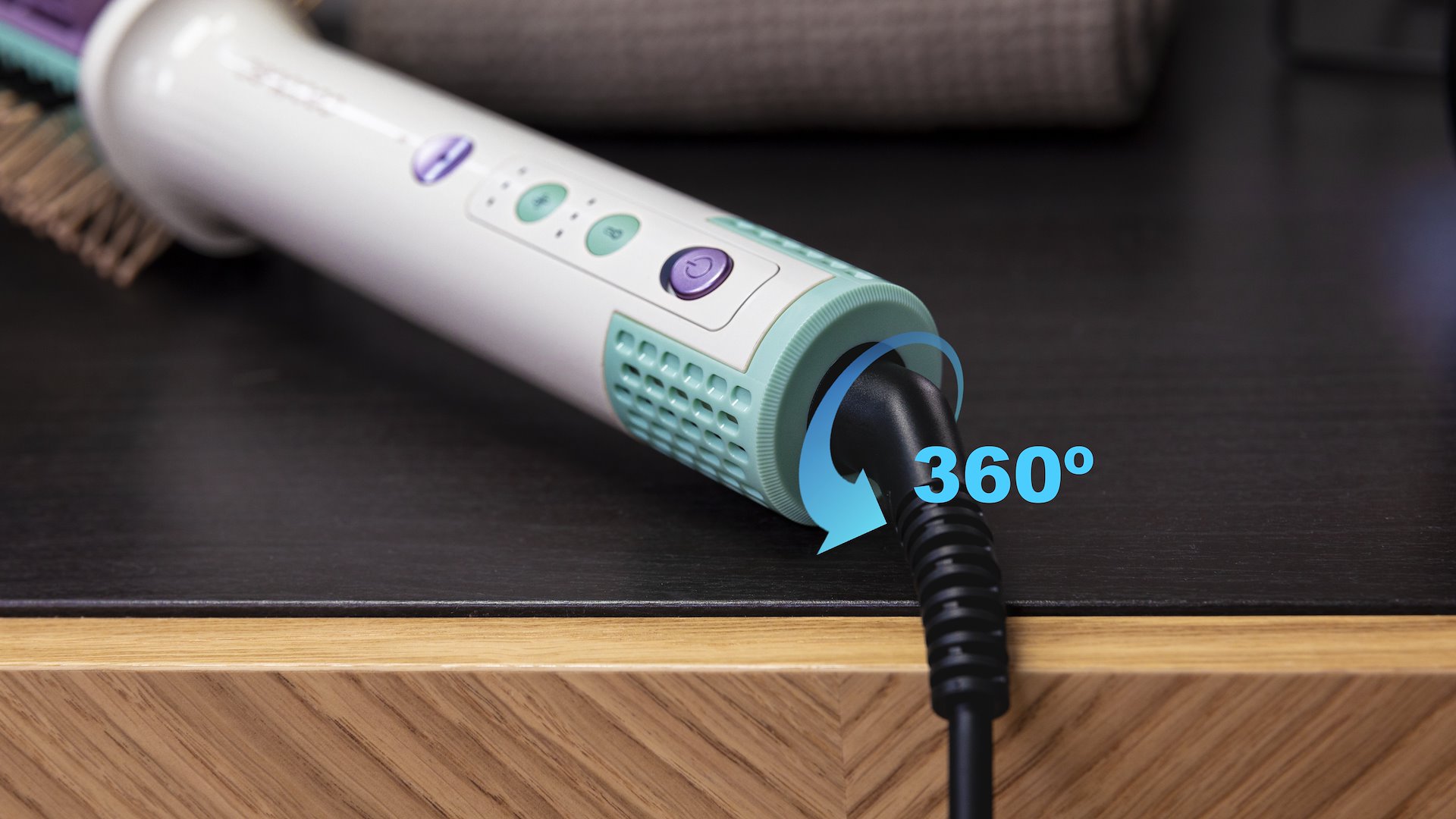 Kabel obracający się wokół własnej osi daje Ci pełną swobodę ruchu podczas stylizacji. Zapomnij o plączących się przewodach i skup się na idealnym efekcie.