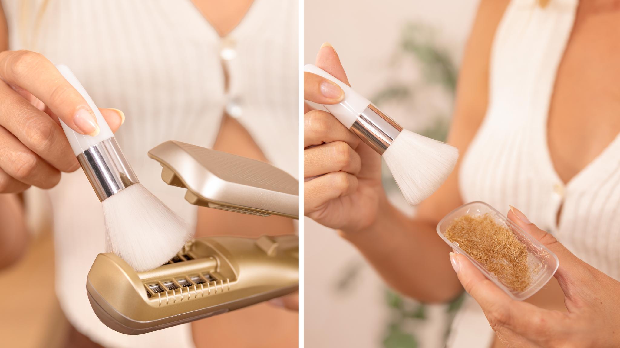 Wbudowany pojemnik zbiera obcięte końcówki, dzięki czemu Twoja przestrzeń pozostaje czysta i uporządkowana — bez sprzątania po stylizacji.