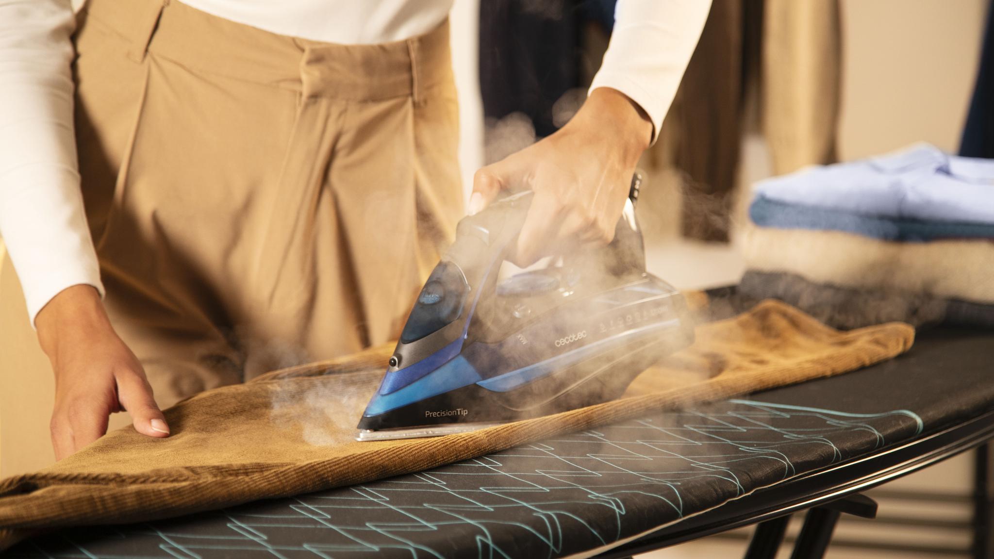 Stały strumień pary do 75 g/min zapewnia skuteczne i szybkie wygładzanie nawet najbardziej opornych tkanin – bez konieczności wielokrotnego prasowania.
