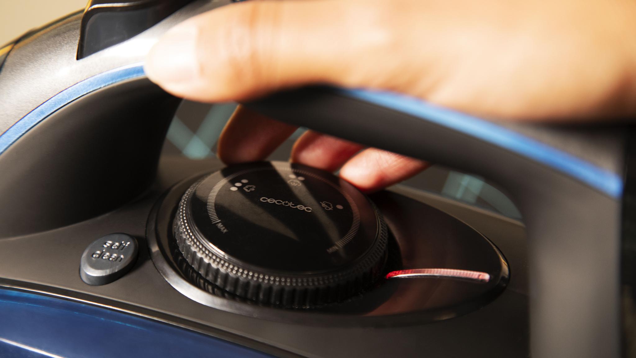 Pokrętło regulacji temperatury pozwala szybko i precyzyjnie dopasować ustawienia do konkretnego materiału, co gwarantuje skuteczne, a jednocześnie bezpieczne prasowanie każdej tkaniny – od delikatnych po te najbardziej wymagające.